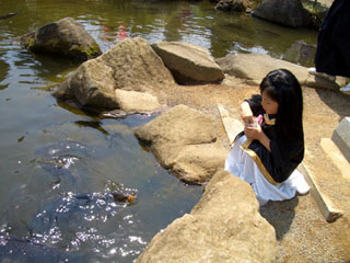 「主上とも一緒に餌やりしたんです。」 「…泰輔のおかげで、 鯉も大きくなりましたね…。」 何気に遊びに来る景麒…(笑)。
